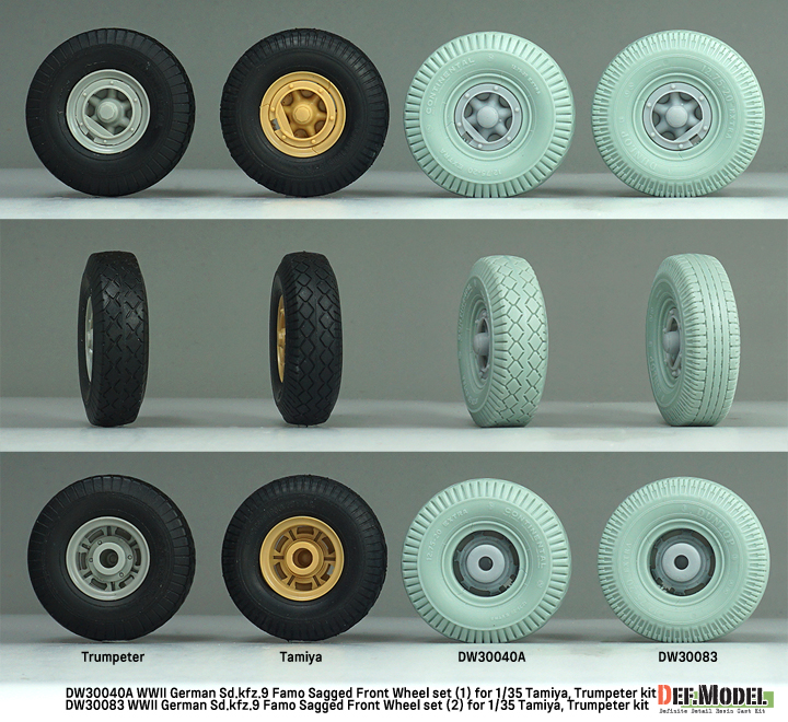 - WWII German Sd.kfz.9 Famo Sagged front wheel set (1) for 1/35 Tamiya, Trumpeter kit