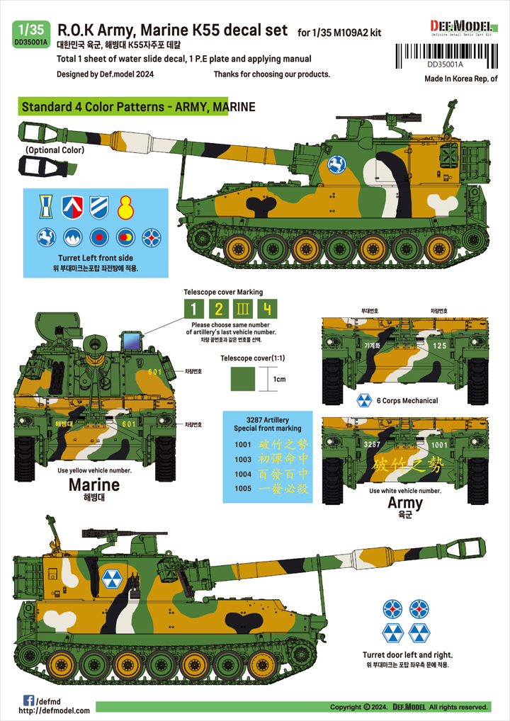 R.O.K Army, Marine K55 decal set (for 1/35 M109A2)