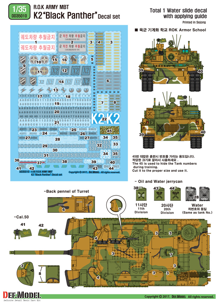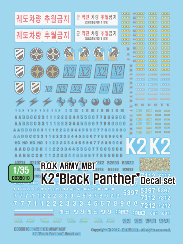 - The decal set of the next generation MBT k2 of the Korean Army.