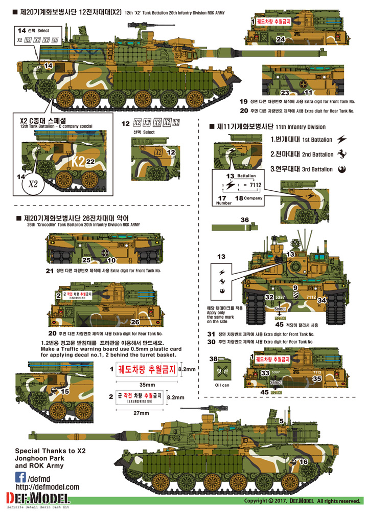 - Faithfully reproduced the marking of the tanks currently arranged in the ROK Army 11 Division and 20 Division.