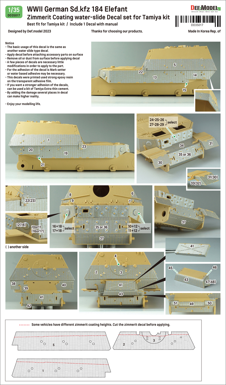 - 1/35 WWII German Sd.kfz 184 Elefant Zimmerit coating decal set