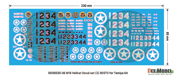 - The decal configuration that can reproduce the M18 TD during WWII for about 4 vehicles.
