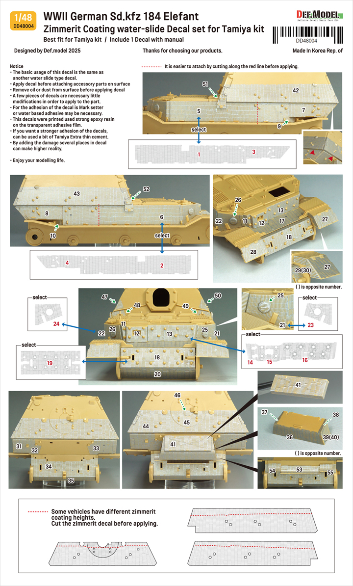 - 1/48 WWII German Sd.kfz 184 Elefant Zimmerit coating decal set