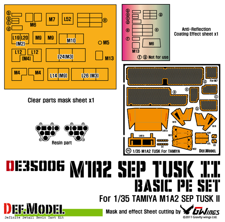 - Total 1 PE plate, 2resin parts, 1 effect sheet, 1 mask sheet