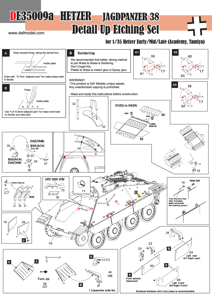 - For Early,Mid, Late version Hetzer basic PE detail set.