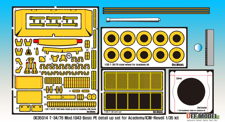 - T-34/76 Mod.1943 Basic PE detail up set for Academy/ICM-Revell kit