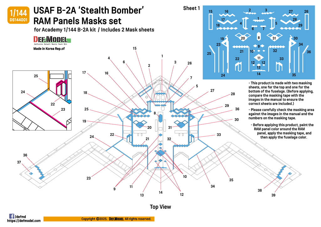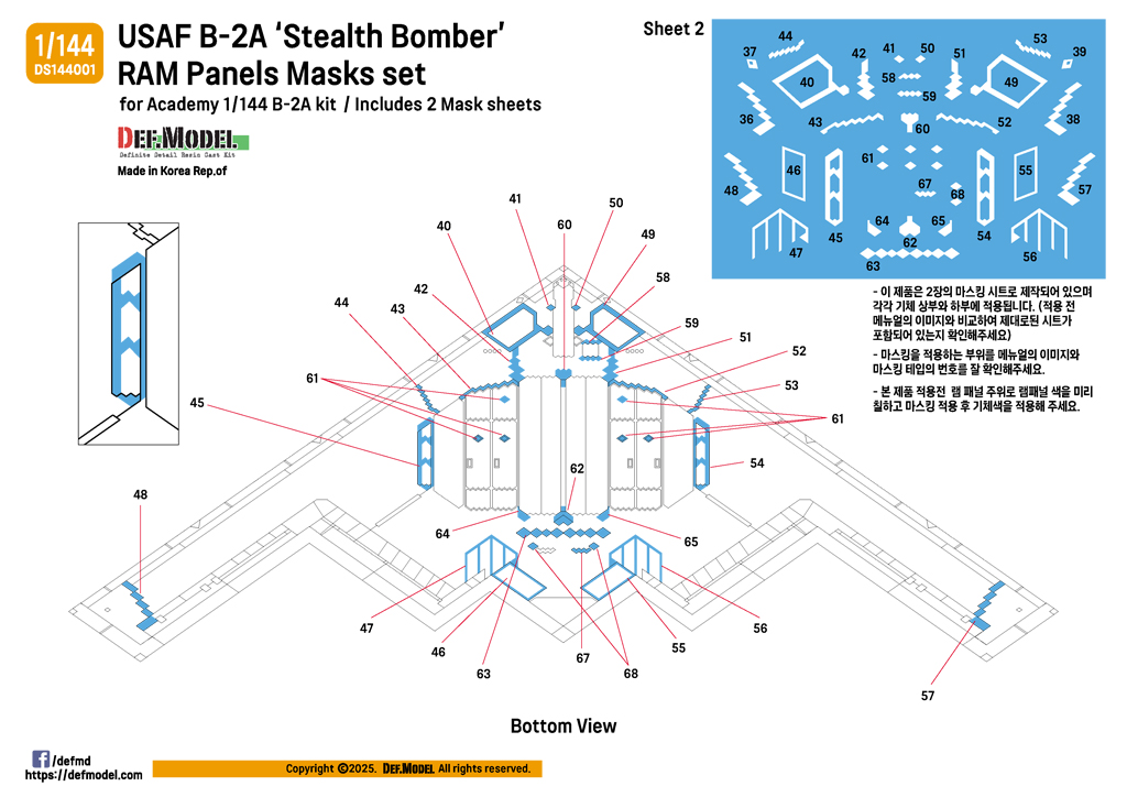 - Ram panel masking sheet set for the 1/144 USAF B-2A Spirit bomber from Academy 1/144 kit