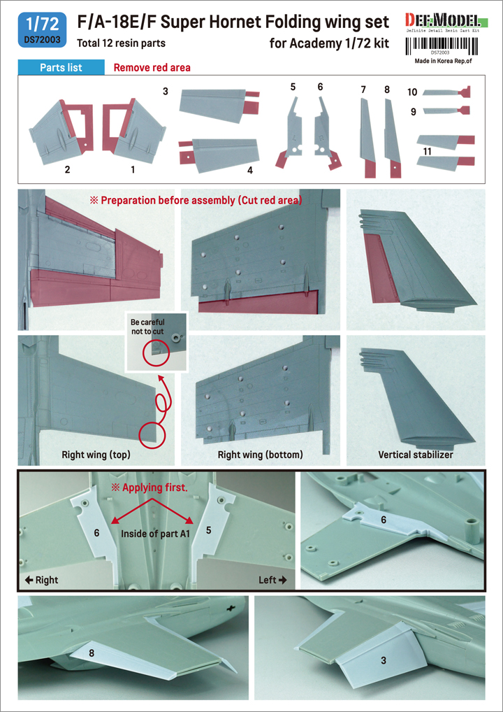 F/A-18F/F Super Hornet Folding wing set for Academy 1/72 kit