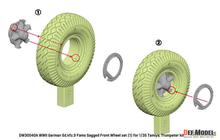 - WWII German Sd.kfz.9 Famo Sagged front wheel set (1) for 1/35 Tamiya, Trumpeter kit