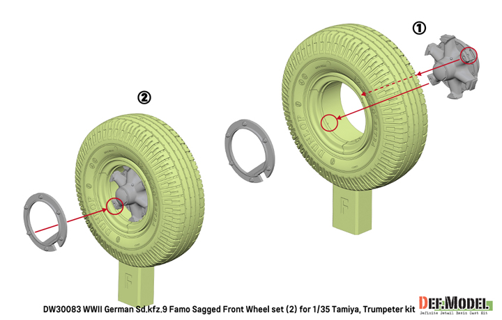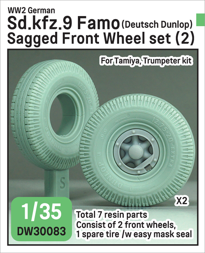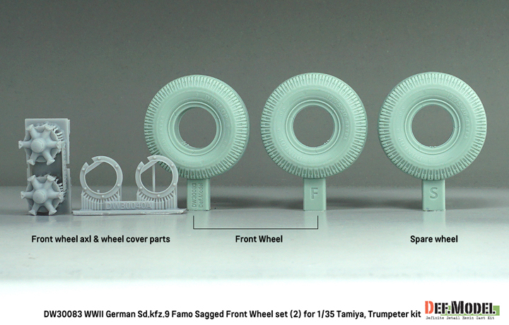 - WWII German Sd.kfz.9 Famo Sagged front wheel set (2) for 1/35 Tamiya, Trumpeter kit