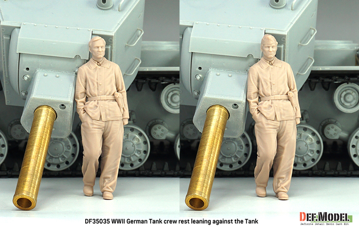 - 1/35 WWII German Tank crew rest leaning against the Tank