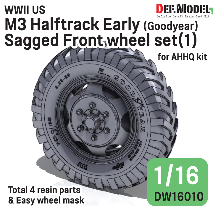 - US M3 Halftrack Early Sagged front wheel set-(1) Goodyear - for 1/16 AHHQ kit