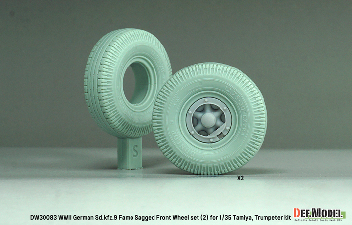 - WWII German Sd.kfz.9 Famo Sagged front wheel set (2) for 1/35 Tamiya, Trumpeter kit