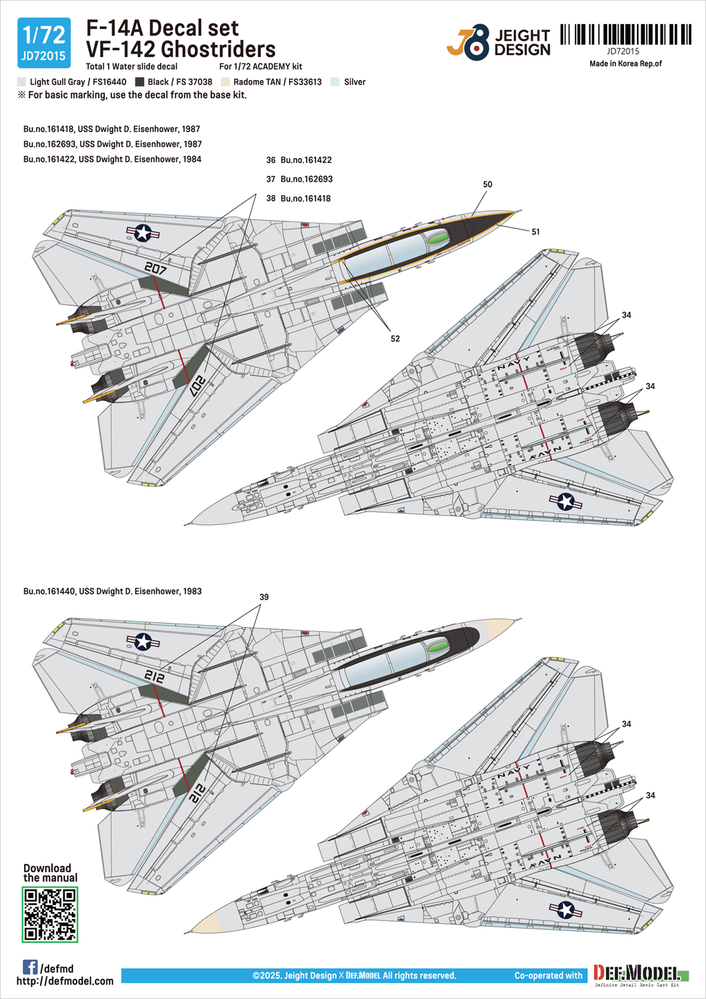 - Decal set of F-14A VF-142 Ghostriders.